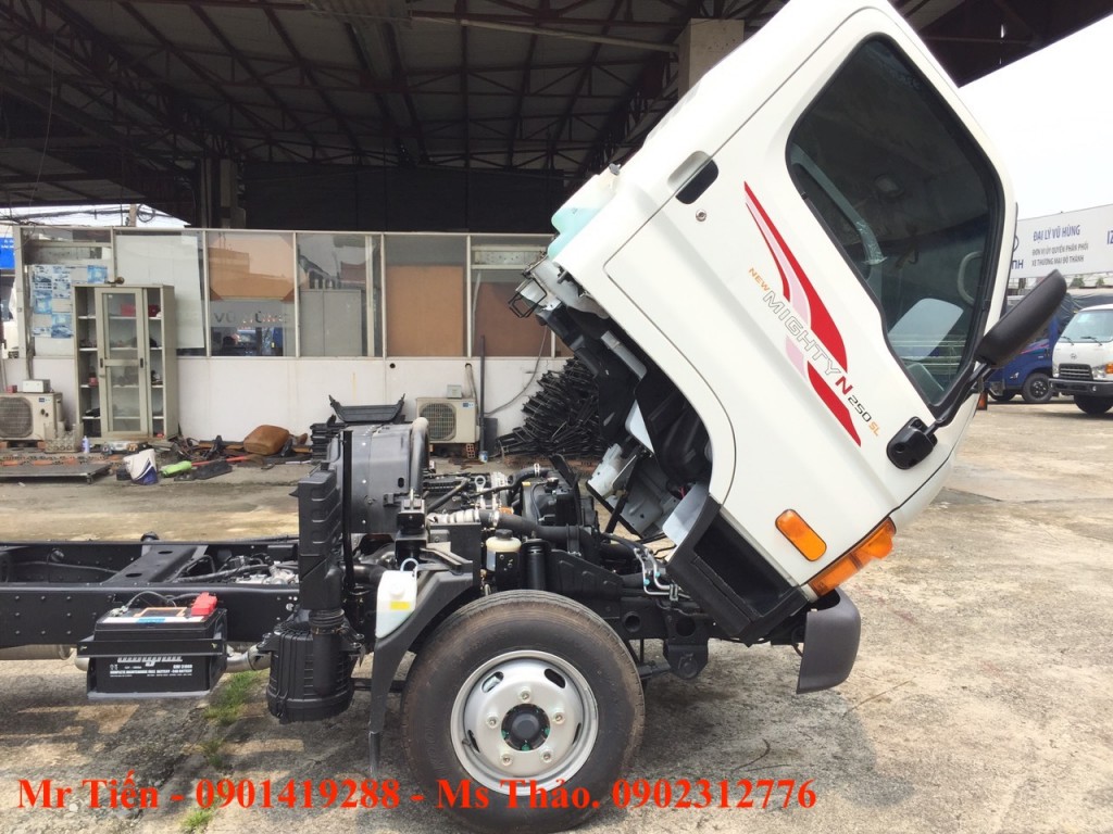 tên N250SL 1.9T có ý nghĩa là gì:N: thể hiện cho chữ ” New ” tức là mới250 thể hiện tải trọng 2,5 tấnS thể hiện cho chữ ” Strong ” là mạnh mẽL thể hiện cho chữ ” Leng ” tức là dài